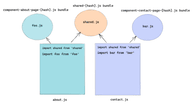 Another thing to notice is that for several bundles, one of the determinants is whether something is used on more than one page. In general, code that is used on multiple pages is going to end up in a bundle like shared or commons, that is loaded on multiple pages.